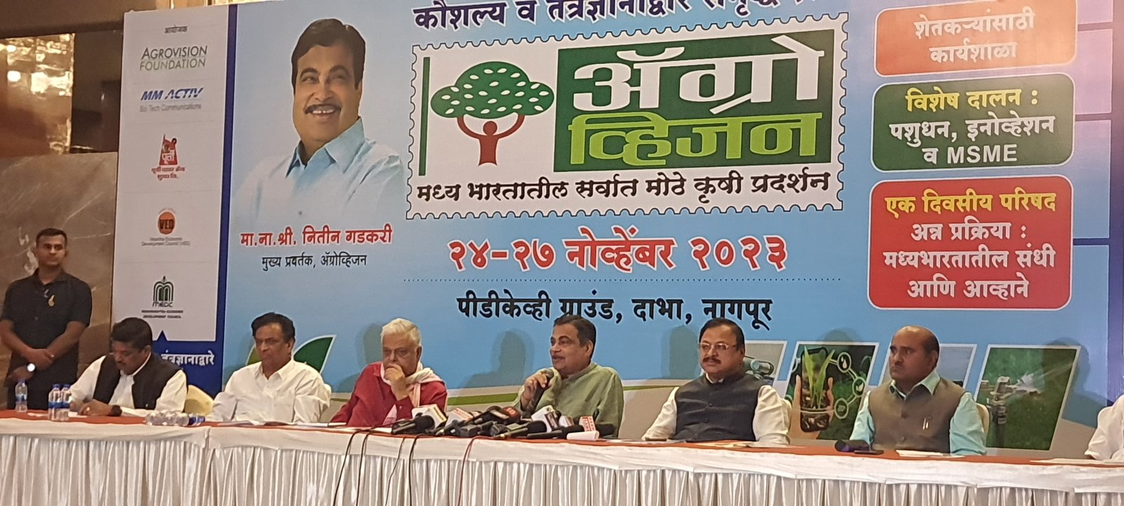 नागपूर : ( २७ ऑक्टोंबर २०२३ ) विदर्भातील कृषी परिवर्तनाचे महत्त्वाचे माध्यम ठरत असलेले मध्य भारतातील सर्वात मोठे कृषी प्रदर्शन, अँग्रोव्हिजन येत्या २४ ते २७ नोव्हेंबर दरम्यान पीडीकेव्ही ग्राउंड, दाभा, नागपूर येथे आयोजित करण्यात आले असल्याची माहिती केंद्रीय मंत्री नितीन गडकरी यांनी आज पत्रकार परिषदेत दिली.