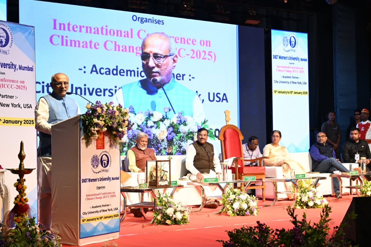 एसएनडीटी महिला विद्यापीठातर्फे आयोजित ‘इंटरनॅशनल कॉन्फरन्स ऑन क्लायमेट चेंज-2025’चे गुरुवारी (दि. १६ जानेवारी २०२५) महामहीम राज्यपाल यांच्या हस्ते उद्घाटन झाले. त्यावेळी ते बोलत होते. या तीन दिवसीय संमेलनाला राज्याचे माजी वने, सांस्कृतिक कार्य व मत्स्यव्यवसाय मंत्री आमदार श्री. सुधीर मुनगंटीवार यांची प्रमुख उपस्थिती होती. तसेच एसएनडीटीच्या कुलगुरू डॉक्टर उज्वला चक्रदेव,आमदार देवराव भोंगळे, जलपुरुष राजेंद्रसिंह, एसएनडीटीचे विलास नानीवाडेकर, युएसचे कॉन्सिलेट जनरल सलील कादेर, कुणी युनिव्हर्सिटी न्यूयॉर्कचे प्राध्यापक नील फिलिप, प्रभारी जिल्हाधिकारी विवेक जॉन्सन, एसएनडीटी बल्लारपूर कॅम्पस संचालक राजेश इंगोले, मनपा आयुक्त विपिन पालीवाल, गोंडवानाचे कुलगुरू डॉ प्रशांत बोकारे आदींची यावेळी उपस्थिती होती.
