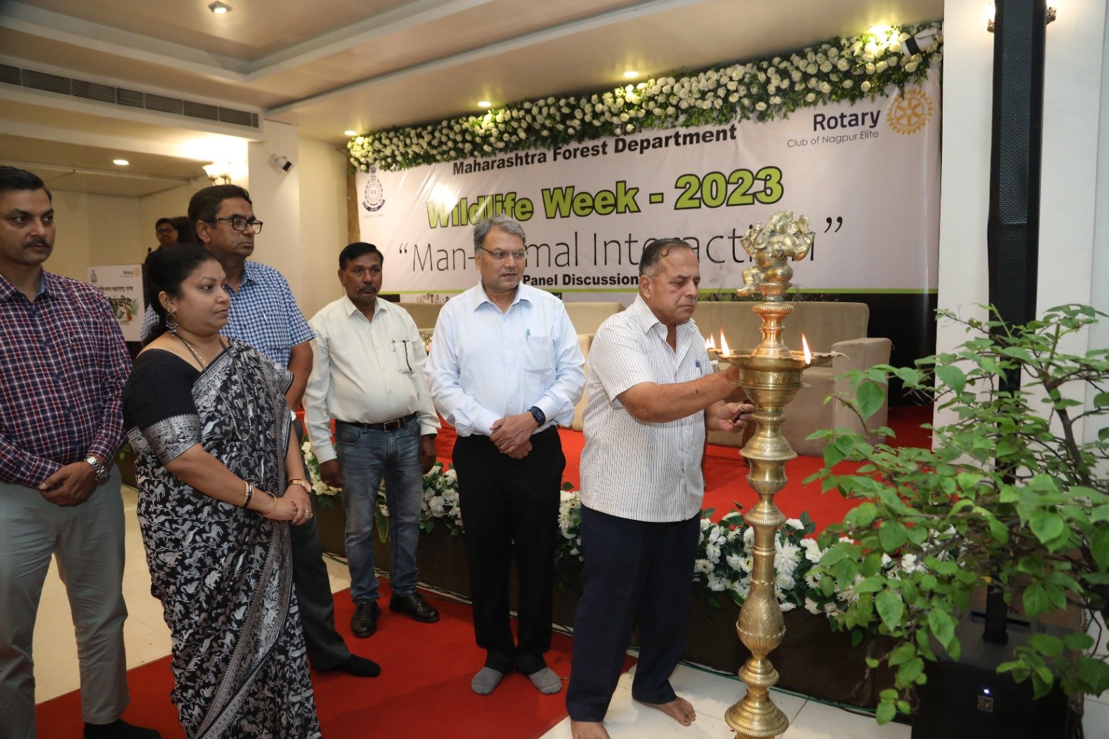 या चर्चासत्राच्या उद्घाटन प्रसंगी राज्याचे प्रधान मुख्य वनसंरक्षक (वनबल प्रमुख) मा. श्री शैलेश टेंभुर्णीकर तसेच राज्याचे प्रधान मुख्य वनसंरक्षक (वन्यजीव) मा. श्री महिप गुप्ता, श्रीमती श्रीलक्ष्मी ए. वनसंरक्षक, नागपूर, डॉ. प्रभू नाथ शुक्ल, क्षेत्र संचालक, पेंच व्याघ्र प्रकल्प, नागपूर आणि डॉ. भारतसिंह हाडा, उपवनसंरक्षक, नागपूर उपस्थित होते. चर्चासत्राच्या अनुषंगाने विविध अशासकीय संस्थांचे प्रतिनिधी, विविध माध्यमांचे पत्रकार, प्राध्यापक, वन्यजीव कायदेविषयक जाणकार आणि वन्यजीव क्षेत्रातील अभ्यासकांना निमंत्रित करण्यात आले होते. आपल्या अध्यक्षीय भाषणात बोलताना श्री. शैलेश टेंभुर्णीकर यांनी मानव वन्यजीव संघर्षाचे रूपांतर मानव वन्यजीव सुसंवादात व्हावे अशी अपेक्षा व्यक्त करताना संरक्षित क्षेत्राबाहेर असणाऱ्या वाघ आणि बिबट यांच्यावर चर्चासत्रादरम्यान विशेष चर्चा करण्याचे आवाहन उपस्थितांना केले. राज्याचे प्रधान मुख्य वनसंरक्षक (वन्यजीव) मा. श्री महिप गुप्ता यांनी उपस्थितांसमोर मानव वन्यजीव संघर्षाच्या उद्देशाने सादरीकरण सादर केले.