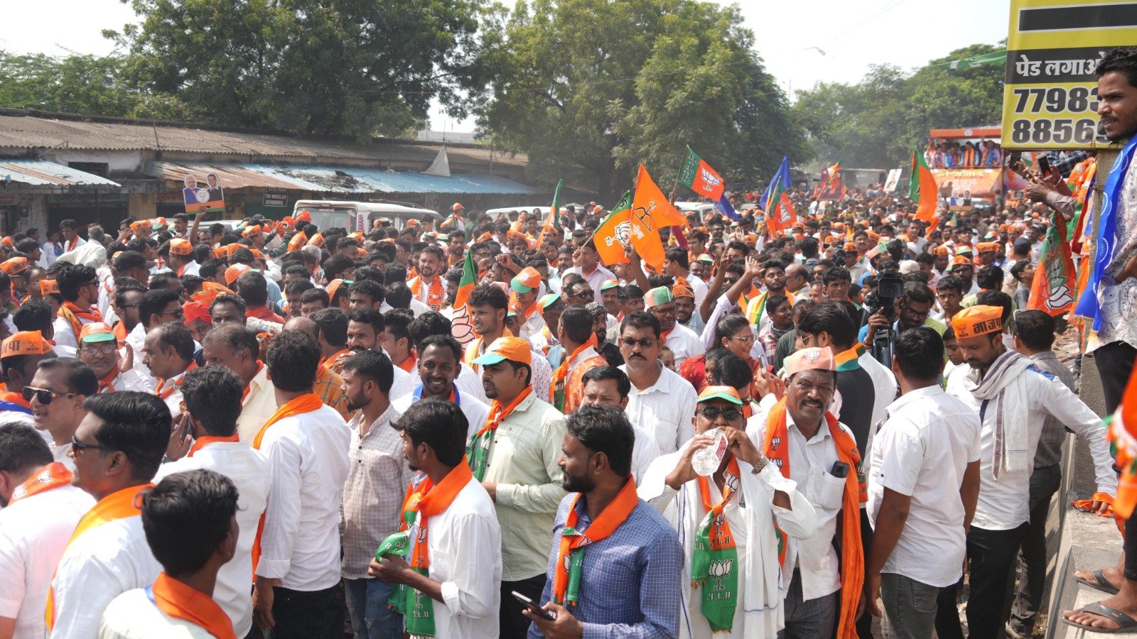 नामांकन दाखल करण्यापूर्वी कामठी येथे पोहचून उपमुख्यमंत्री देवेंद्र फडणवीस यांच्यासमवेत चंद्रशेखर बावनकुळे यांनी डॉ. बाबासाहेब आंबेडकर आणि छत्रपती शिवाजी महाराजांच्या प्रतिमेला पुष्पहार अर्पण करत अभिवादन केले आणि त्यानंतर सजवलेल्या रथातून भव्य रॅलीला सुरुवात झाली. कार्यकर्त्यांच्या घोषणांनी संपूर्ण कामठीचा परिसर दुमदुमत होता. "वारे कमल आ गया कमल", "बावनकुळे साहेब आगे बढ़ो, हम तुम्हारे साथ हैं" या घोषणांनी संपूर्ण परिसर भारावून गेला. ढोल-ताशांच्या गजरात, डीजेच्या तालावर कार्यकर्ते उत्साहाने नाचत होते, तर लाडक्या भगिनींनी भगवा आणि निळा दुपट्टा परिधान करून या उत्सवात आपला सहभाग नोंदवला.